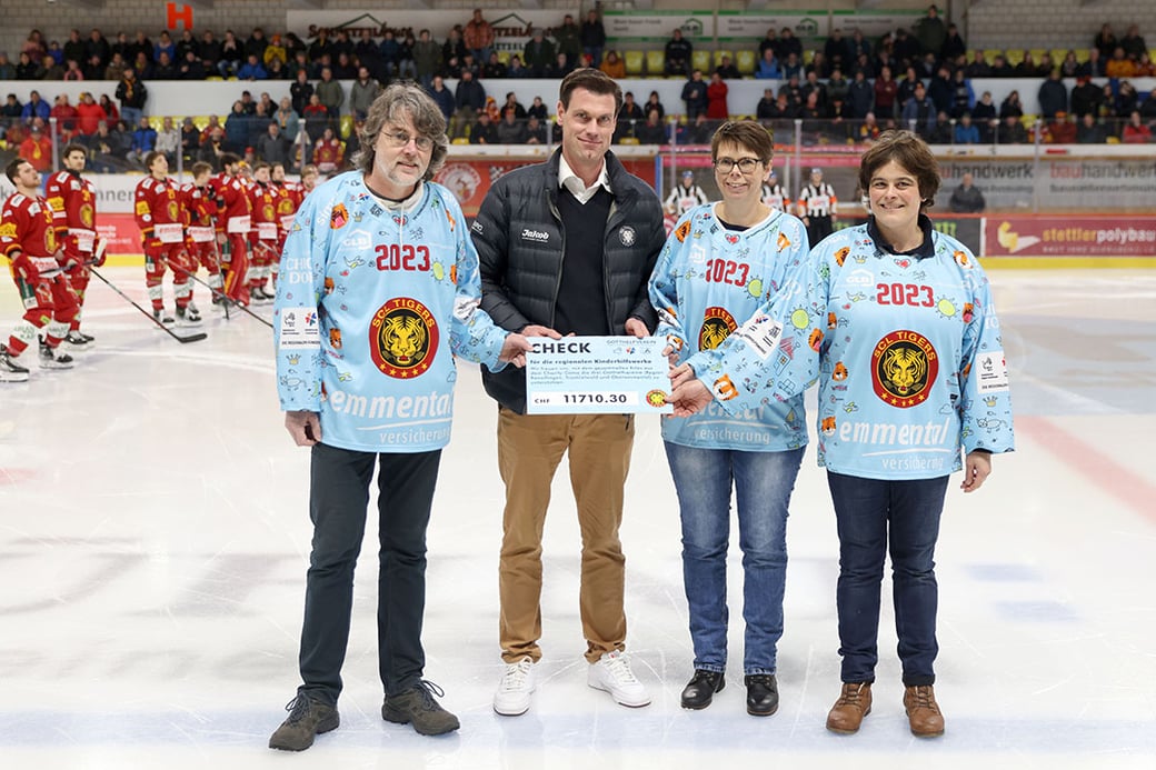 Mit der Checkübergabe am Heimspiel der SCL Tigers vom Freitag, 26.01.2024 wurde die gemeinsame Wohltätigkeitsaktion zu Gunsten der